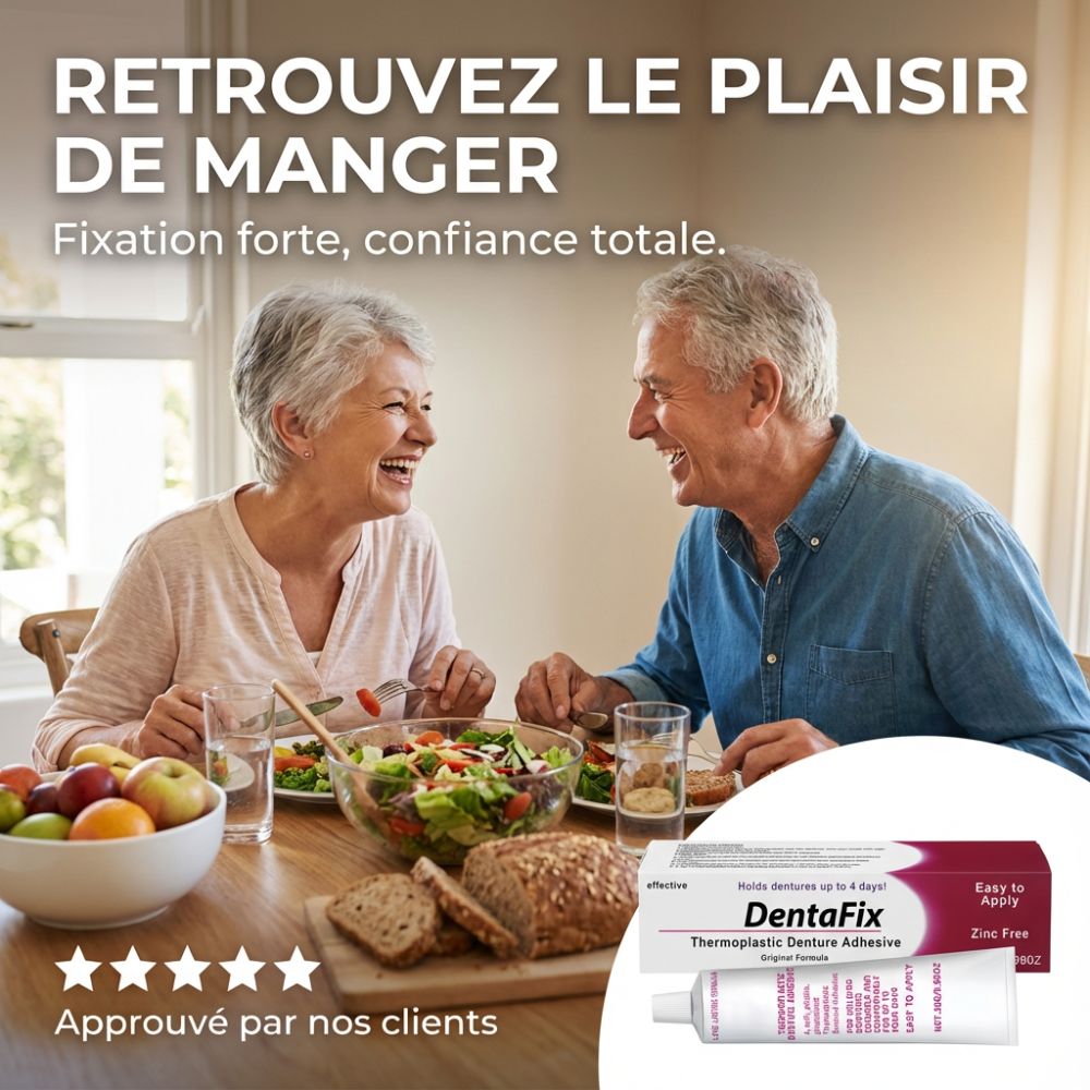 La colle Dentafix offre une fixation fiable et confortable pour maintenir votre dentier bien en place, jour après jour.